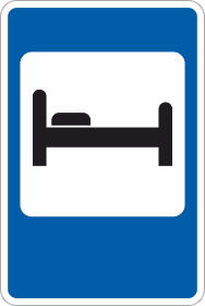 Дорожный знак сервиса "Гостиница или мотель" информирует участников движения о близлежащей гостинице, мотеле, гостевом доме или хостеле.