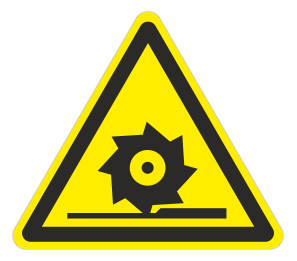 Предупреждающий знак «Осторожно. Режущие валы» устанавливается на участках работ и оборудовании, имеющем незащищенные режущие валы, например на деревообрабатывающем, дорожном или сельскохозяйственном оборудовании.