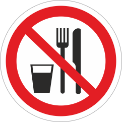 Запрещающий знак «Запрещается принимать пищу». Устанавливается на местах и участках работ с вредными для здоровья веществами, а также в местах, где прием пищи запрещен. Область применения знака может быть расширена.