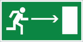 Эвакуационный знак «Направление к эвакуационному выходу направо» предназначен для указания направления движения к эвакуационному выходу – направо.